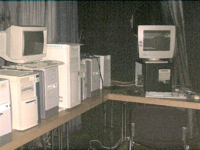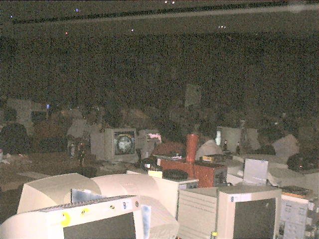 Die Bilder sind leider nicht so gut, die Halle war locker 30 m breit und 100 m lang. Auf dem Podest waren etwa 10 Server und 20 Spieler und im Nebenraum waren 10-20 Leute.
