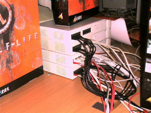 Wie man sieht waren Server+Netzwerk von der Kategorie "Adelig". Das sind 3COM Superstack II 3300 Switches, die Leistungsfähigsten 10/100 Mbit Switches soweit ich weiss. Ich habe nicht alles gesehen, es gab auch noch einige Switches von HP.